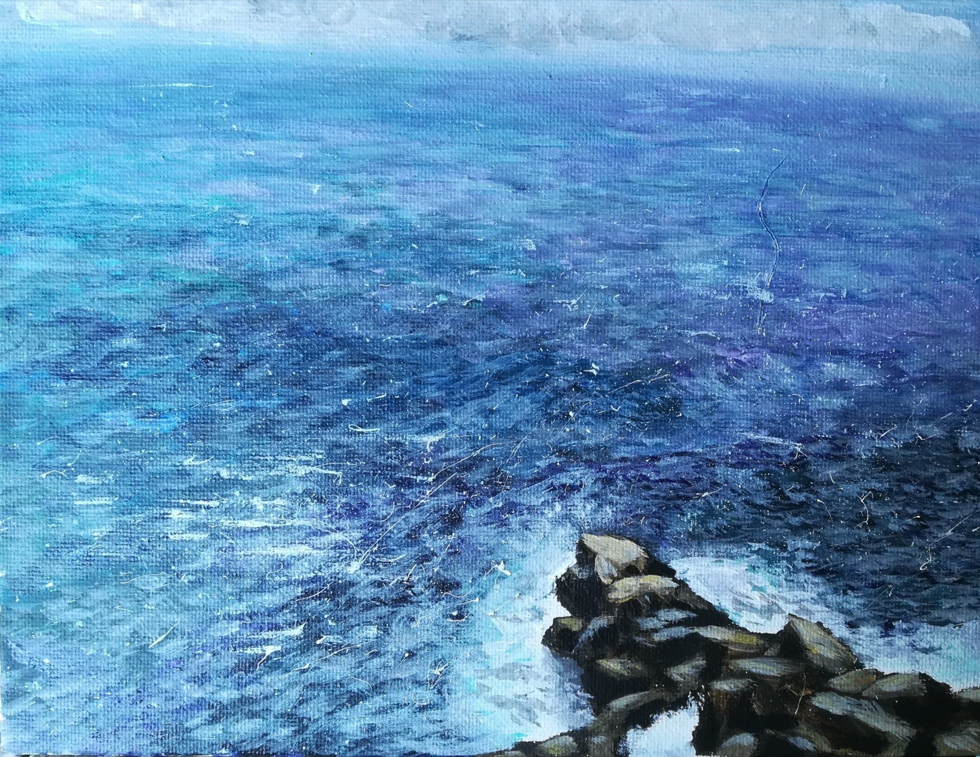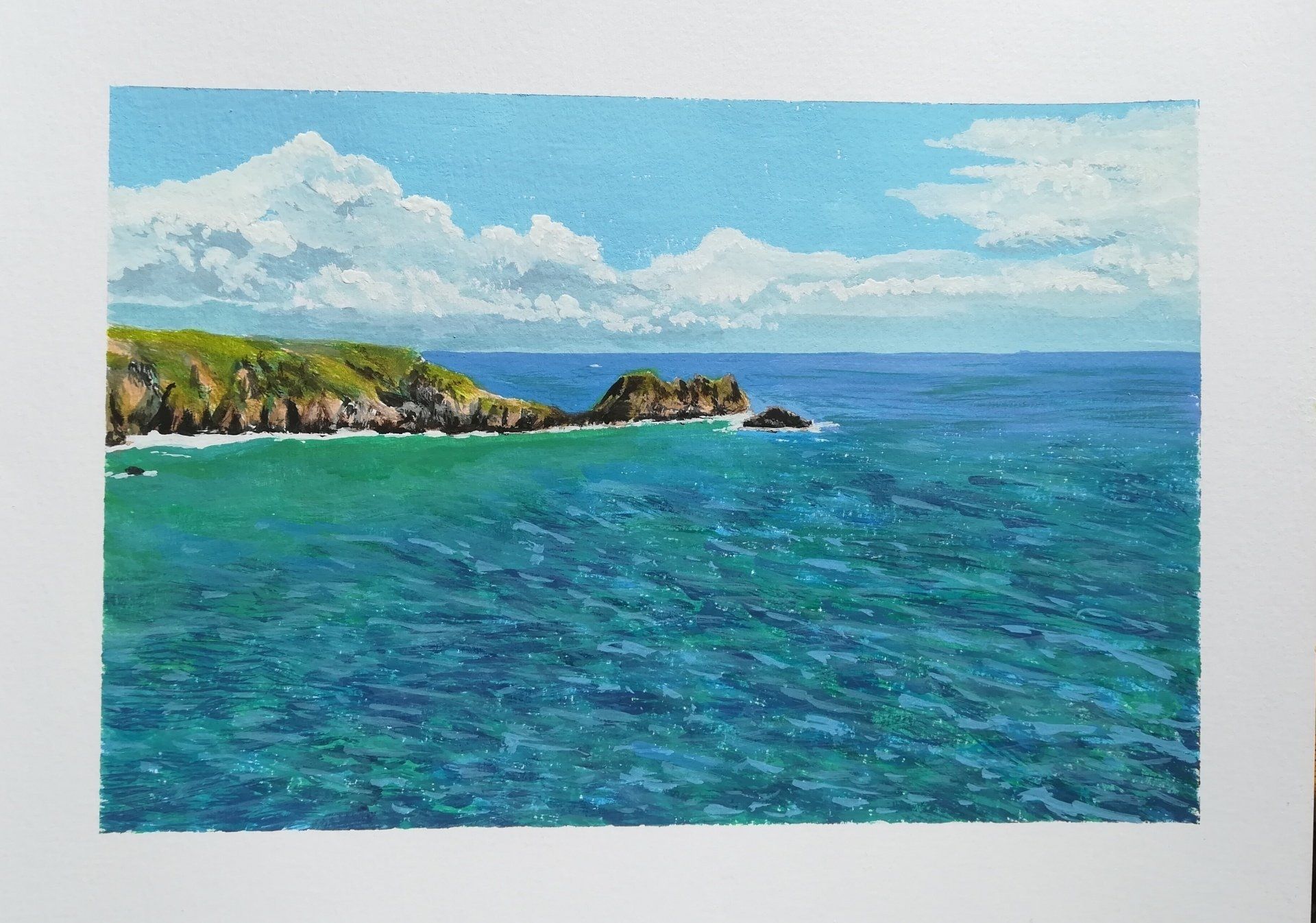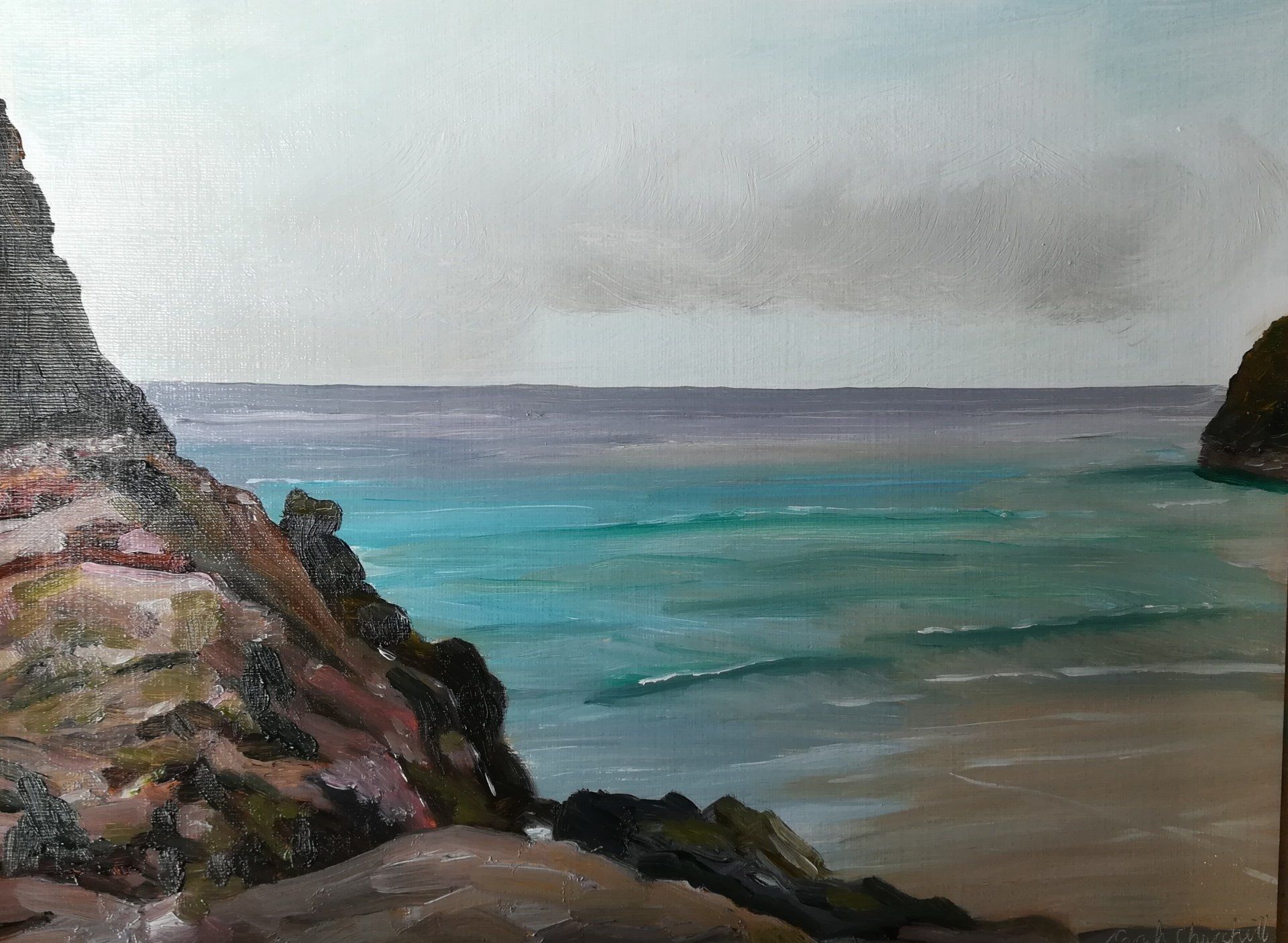 During Lockdown I have found more time to paint and more opportunity to experiment with all sorts of styles. I have really been enjoying painting seascapes from old holiday photos. The title is inspired by subject and the current situation!